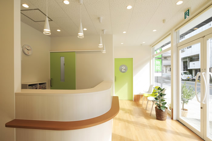 皆様に快適に過ごしていただけるよう、広めに待合室を作ってあります。ネコちゃんの待合スペースは入口を入って右側、ワンちゃんの待合スペースは入口を入って左側と分けさせていただいております。
